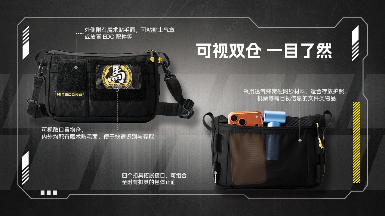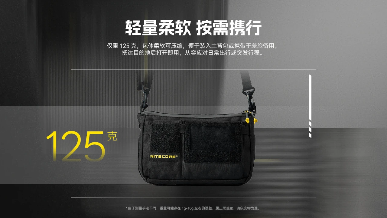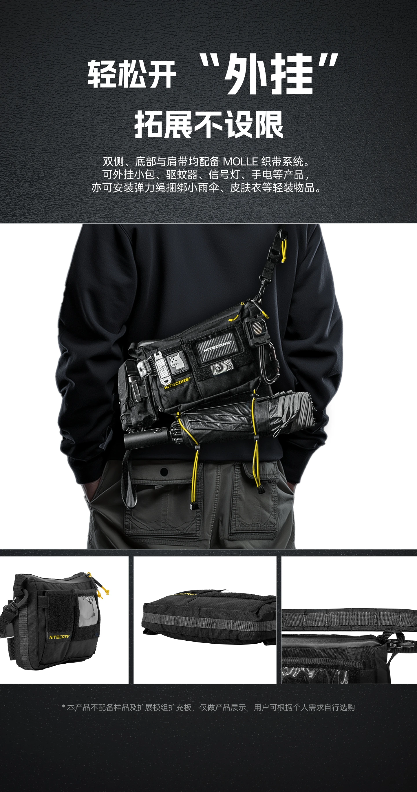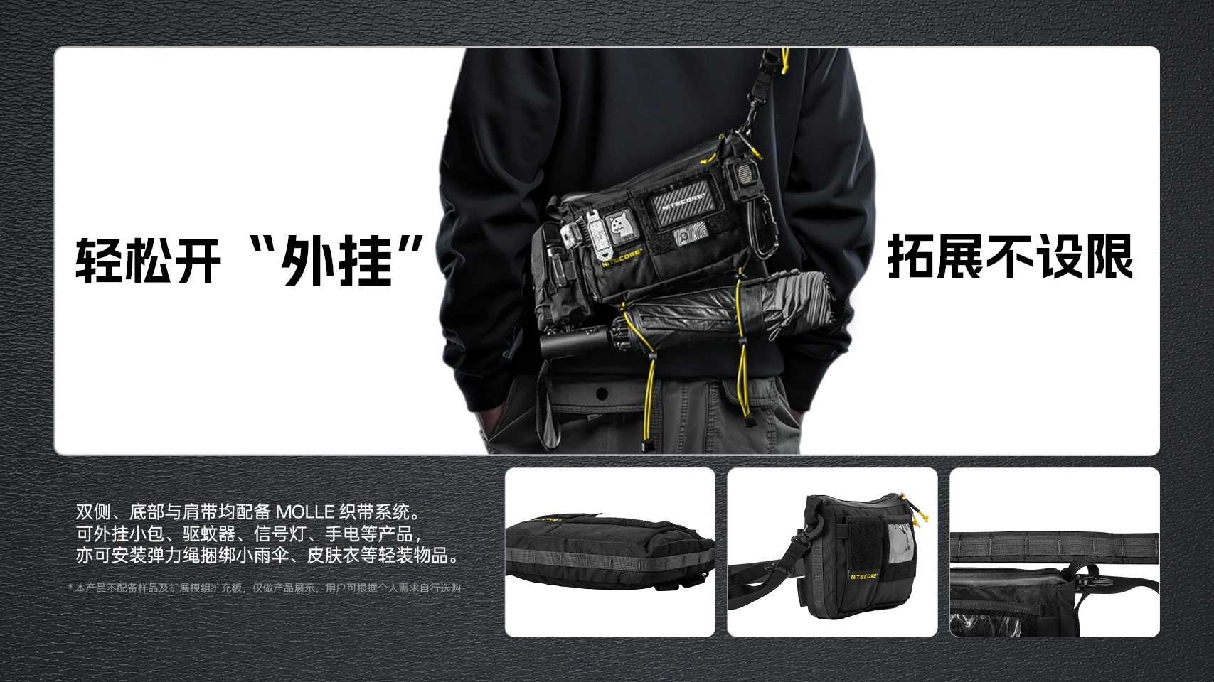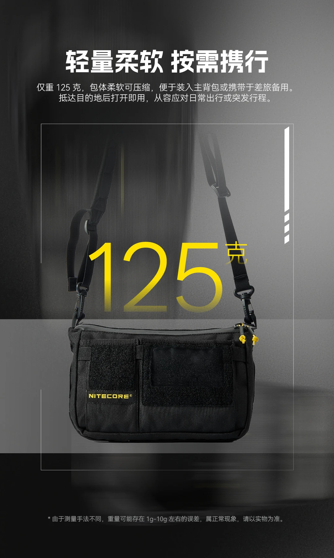 奈特科尔SLB08机能通勤斜挎包,包体柔软可折叠,仅重125克,拥有2升容量。配备可视双仓、魔术贴毛面,以及包体多点MOLLE拓展系统。配合多种背负方式,满足单日通勤、City Walk、差旅扩容备用及机能风搭配等多类场景需求。